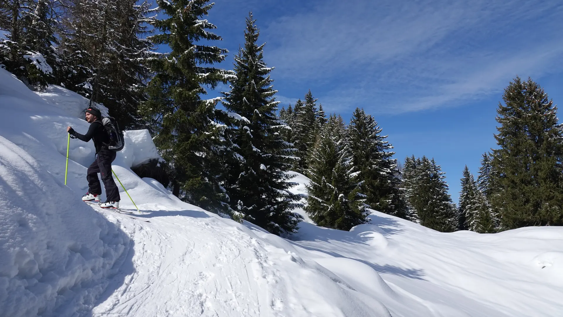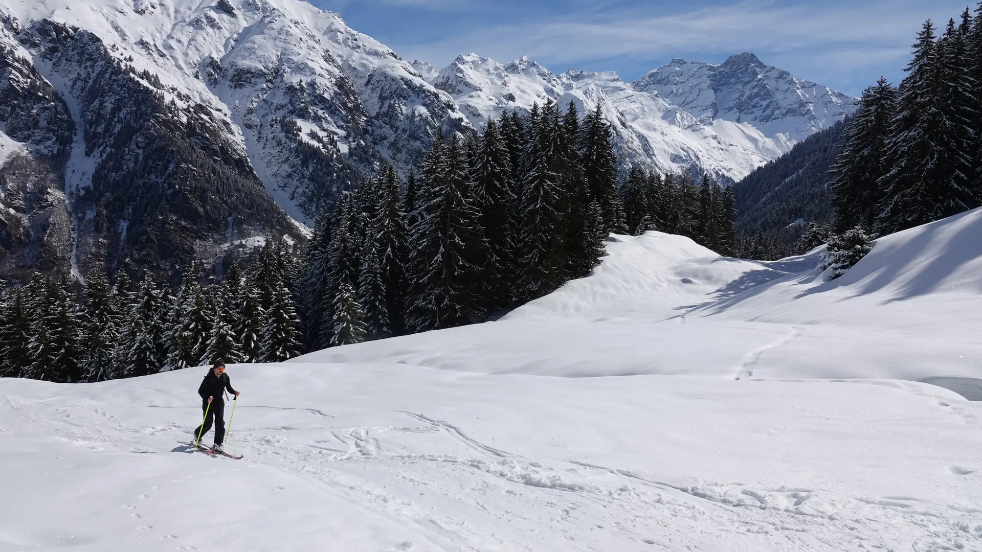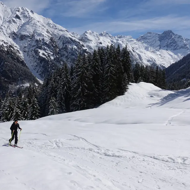 Steigen Sie von La Barmasse zur Brunet-Hütte auf, durchqueren Sie verschneite Wälder und Lichtungen. Lassen Sie die majestätischen Gipfel und die frische Luft des Bagnes-Tals jeden Schritt zu einem Wunder werden.