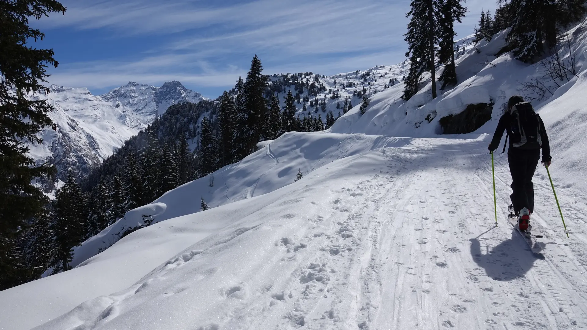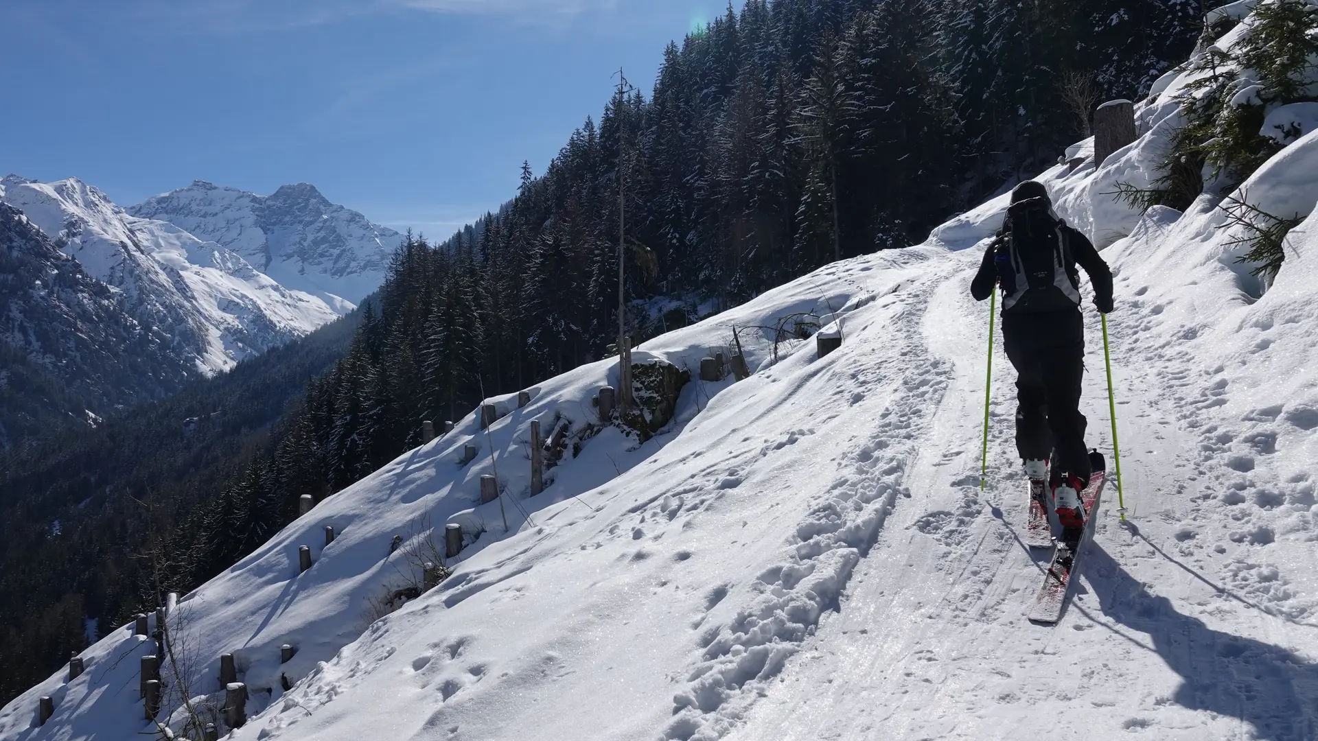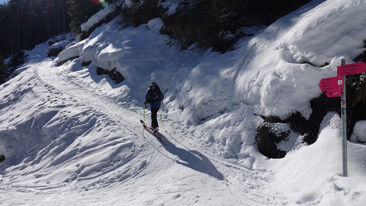 Vom Parkplatz La Barmasse aus folgen Sie der verschneiten Straße in Richtung Cabane Brunet. An der ersten Kreuzung biegen Sie links auf den Weg ab, der durch den Wald hinaufführt. Dieser erste Anstieg wird Sie sicherlich ins Schwitzen bringen, aber die Anstrengung wird schnell durch immer bezauberndere Landschaften belohnt. Auf halber Strecke erreichen Sie eine kleine Lichtung, die sich ideal für eine besinnliche Pause eignet. Von dort aus können Sie die umliegenden Berge bewundern, insbesondere den imposanten Mont-Pleureur, der den Talgrund von Bagnes überragt. Setzen Sie Ihren Weg dann durch den Wald bis zum Ende dieses schönen Aufstiegs fort, wo Sie wieder auf die Straße treffen. Nun bleibt nur noch ein letzter, sanfterer Anstieg, um die Hütte zu erreichen. Dank ihrer Flagge in den Farben von Bagnes können Sie sie bereits teilweise sehen.