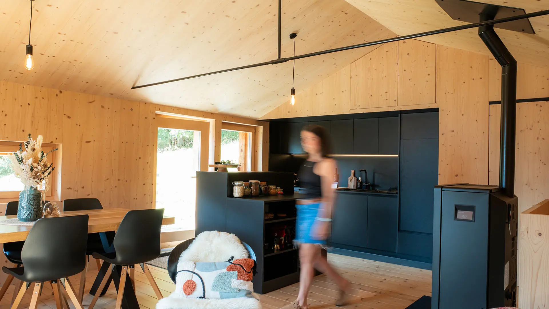 Ein hölzerner Kokon, sorgfältig renoviert, um den Charme der alten Welt mit modernem Komfort zu verbinden.