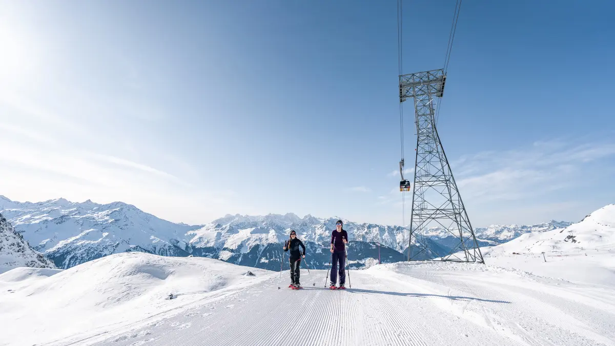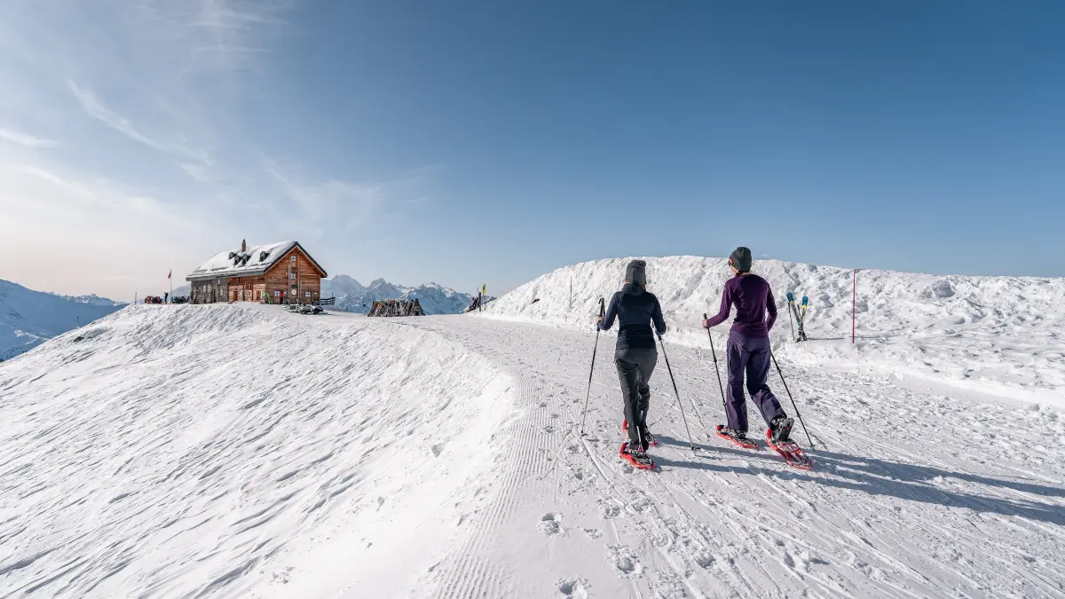 Für die Mutigsten ist die Mont Fort Hütte nicht mehr weit! Nach einigen Metern Abstieg steigt der Weg wieder an und führt rechts um die Anlage der Gentianes herum. Du gehst dann einige Minuten parallel zur Seilbahn nach oben und biegst rechts ab, bis du unter einem großen Mast stehst. Am Fuße desselben kannst du die Hütte sehen, die dich überragt. Ein letzter, steilerer Anstieg führt dich zum Ziel.