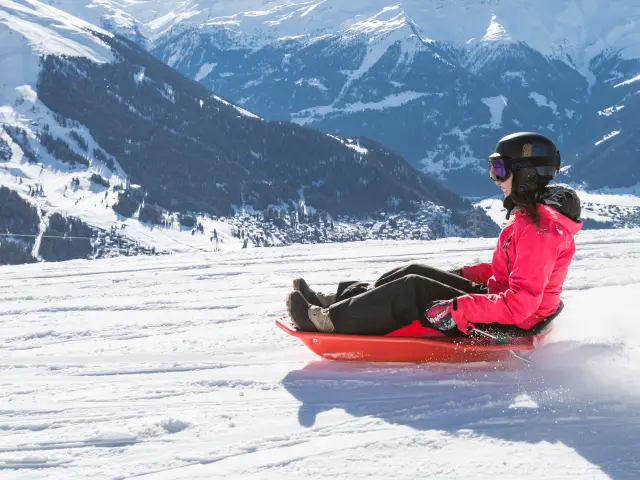 Piste de luge à La TzoumazEine der längsten Rodelbahnen der Westschweiz mit einem Höhenunterschied von 711 m: garantierte Sensationen.
