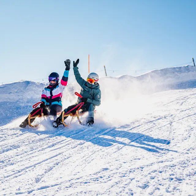 Es gibt einen separaten Bereich zum Rodeln! Der perfekte Ort für Familien! Ein kostenloses Förderband bringt Sie zum Gipfel des Hangs.