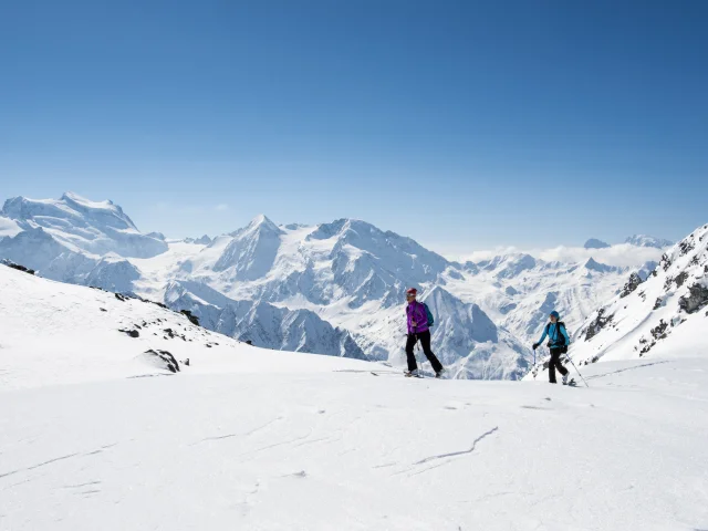 Peau de phoque aux pieds, en compagnie d’un guide de montagne ou en suivant les itinéraires balisés, pars à l’assaut de la montagne et à la conquête de vastes étendues enneigées encore préservées.