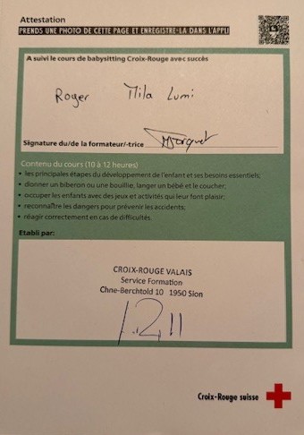 Certificat Croix-Rouge : oui