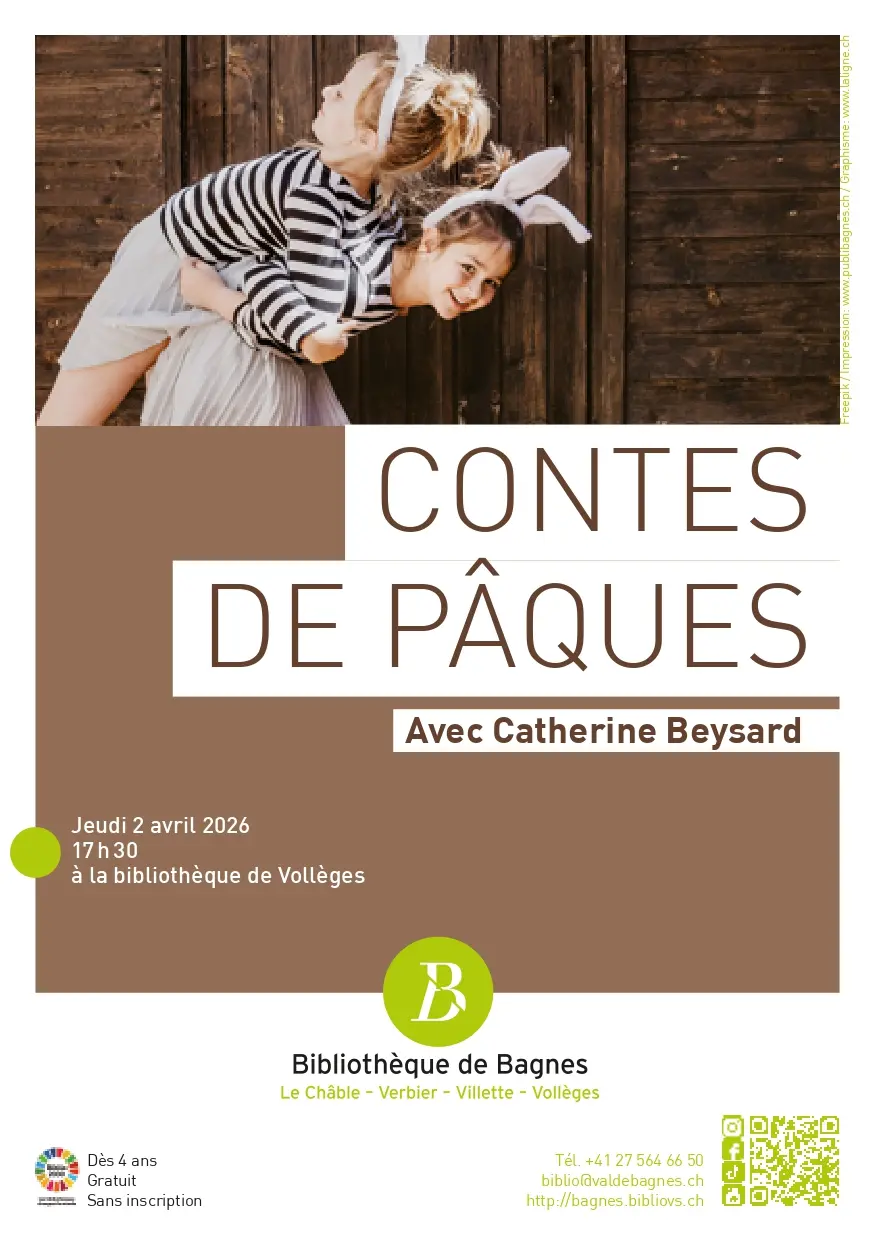 La bibliothèque de Vollèges accueille la talentueuse conteuse Catherine Beysard pour un moment enchanté autour des contes de Pâques.