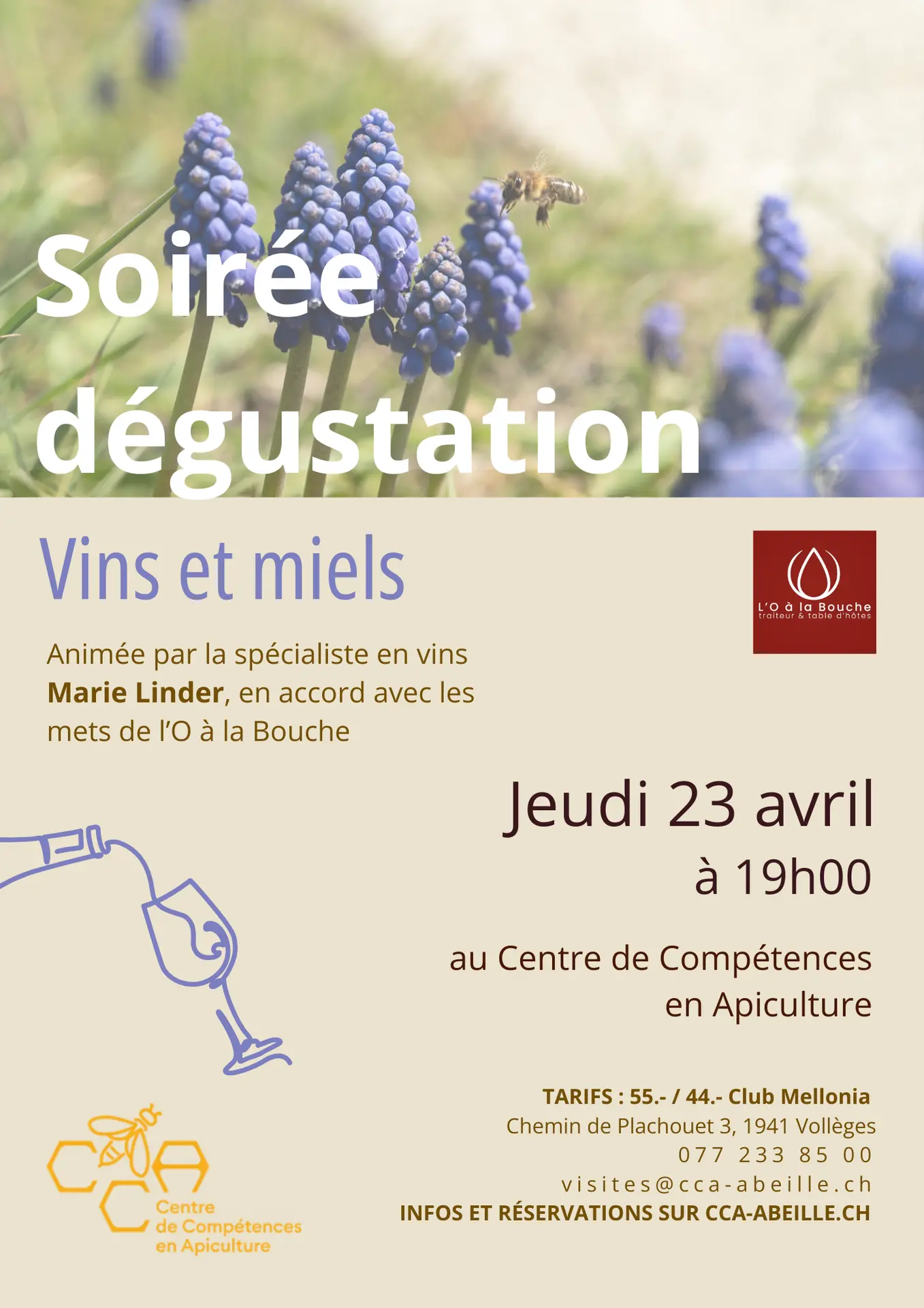 Venez découvrir le Centre de Compétences en Apiculture à l'occasion d'une soirée accords mets, miels et vins.