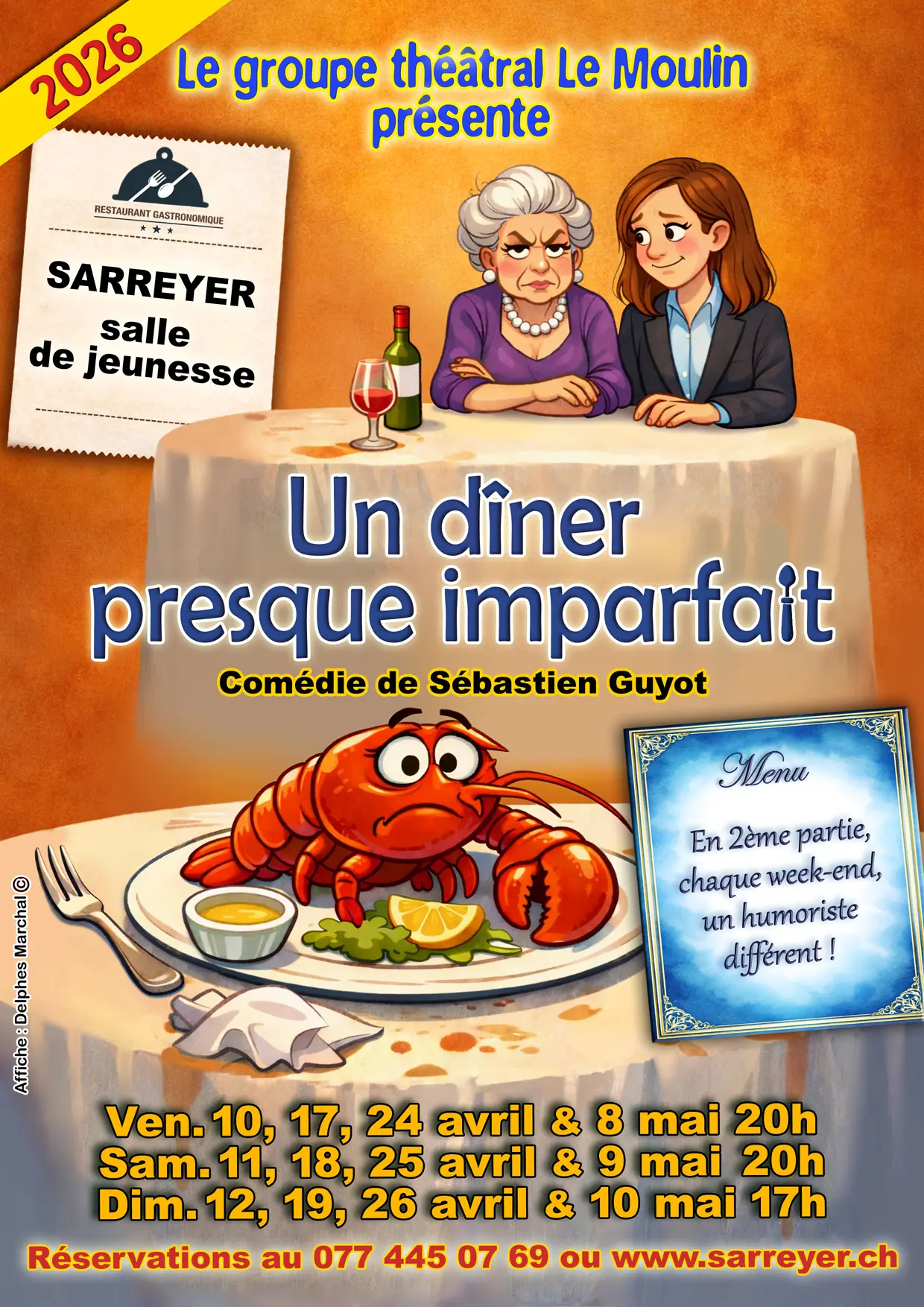 Alors, quand une opportunité s’offre à lui, le maître d’hôtel décide de tenter l’aventure, malgré ses réticences. Mais celui-ci va vite déchanter face aux nombreuses maladresses de ce commis, tombé du ciel. Et ce n’est pas Mademoiselle CHANTEFOIN, héritière de bonne famille à cheval sur les principes et les règles de politesse, qui dira le contraire... Son médecin particulier tente bien de rattraper les situations délicates sans grand succès. Entre une patte de homard qui résiste un peu trop, une sauce qui ne veut pas couler là où elle devrait et un dessert qui va un peu trop réchauffer Mademoiselle CHANTEFOIN, le maître d’hôtel ne sera pas au bout de ses surprises pour ce dîner un peu surréaliste.