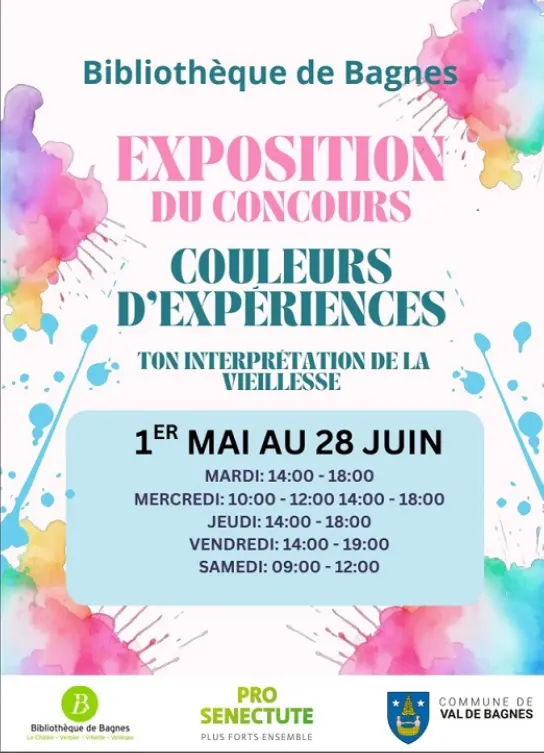 The ‘Couleurs d'Expériences’ art competition was organised by the Pro Senectute Valais Foundation, Val de Bagnes region, in collaboration with Bagnes Library. Its aim was to encourage and support new talent, both professional and amateur, in the creation of original projects in the visual arts or writing. Once the competition had concluded, a jury comprising three visual artists, a journalist and a local councillor visited the Châble Library to assess the entries.