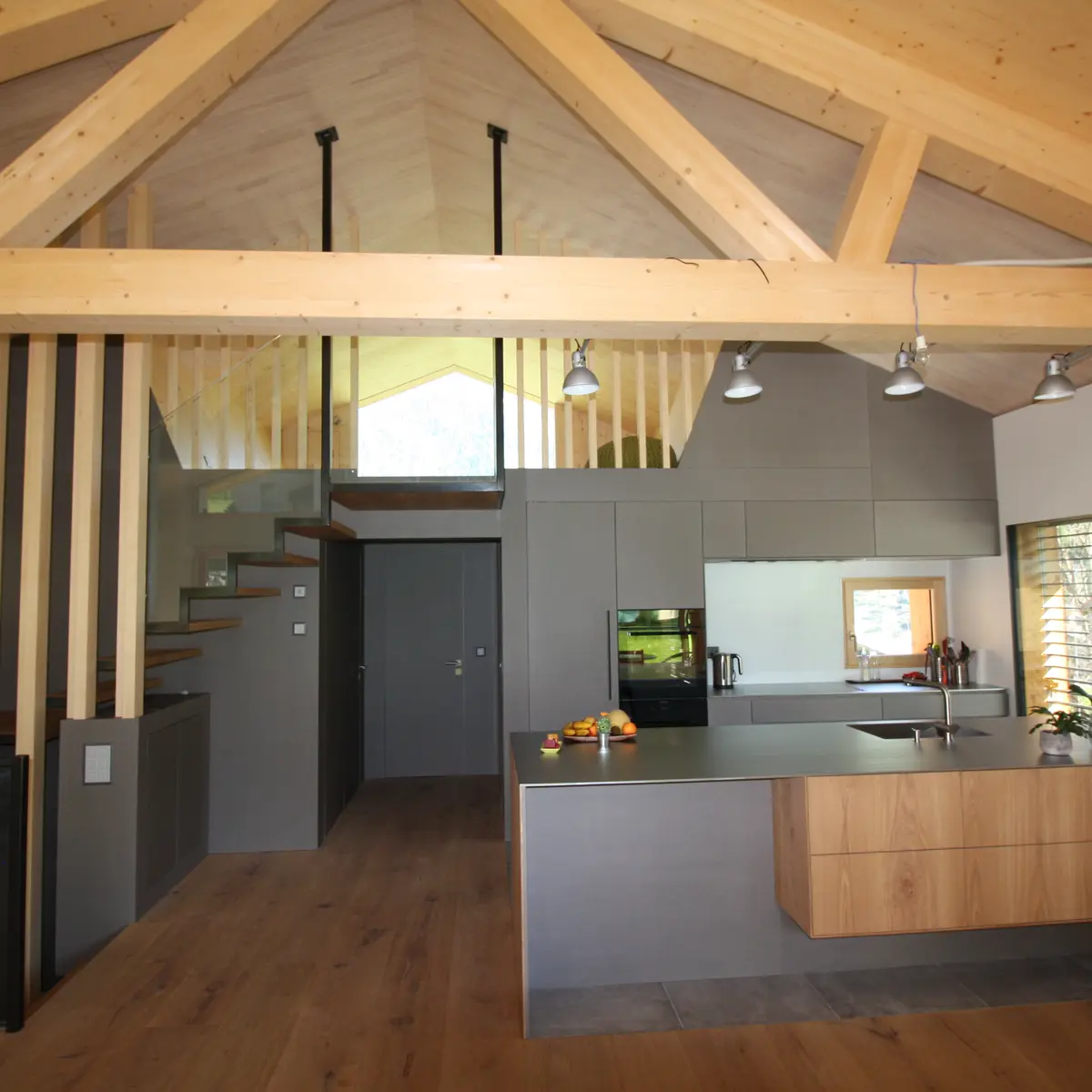 - Menuiserie : Création d’escaliers, agencements intérieurs, cuisines sur mesure, mobilier, ainsi que la pose de portes et fenêtres.